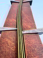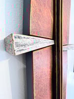 Wood construction, wall sculpture, paint, colored pencil