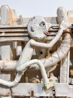 Carved and painted wood, metal embellishments