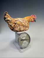 Clay chicken on vintage scale